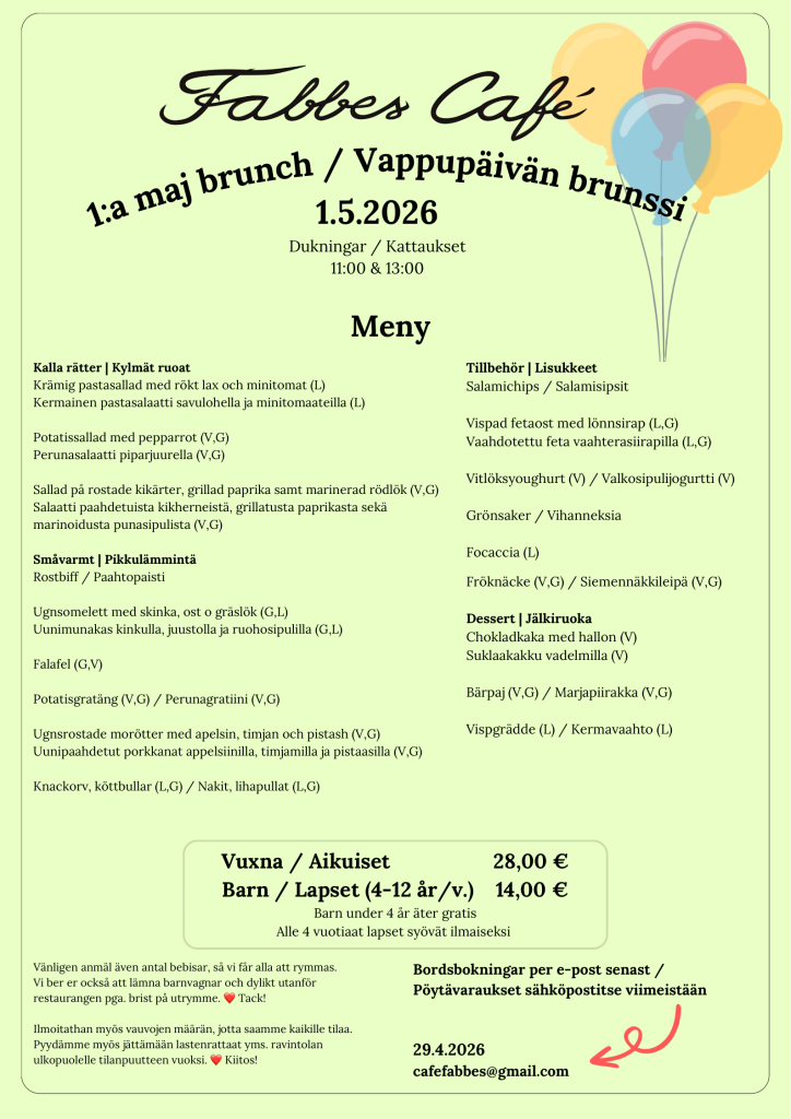 raikas salaattipöytä, Fabben leipä ja kahvi/tee sisältyy lounaaseen